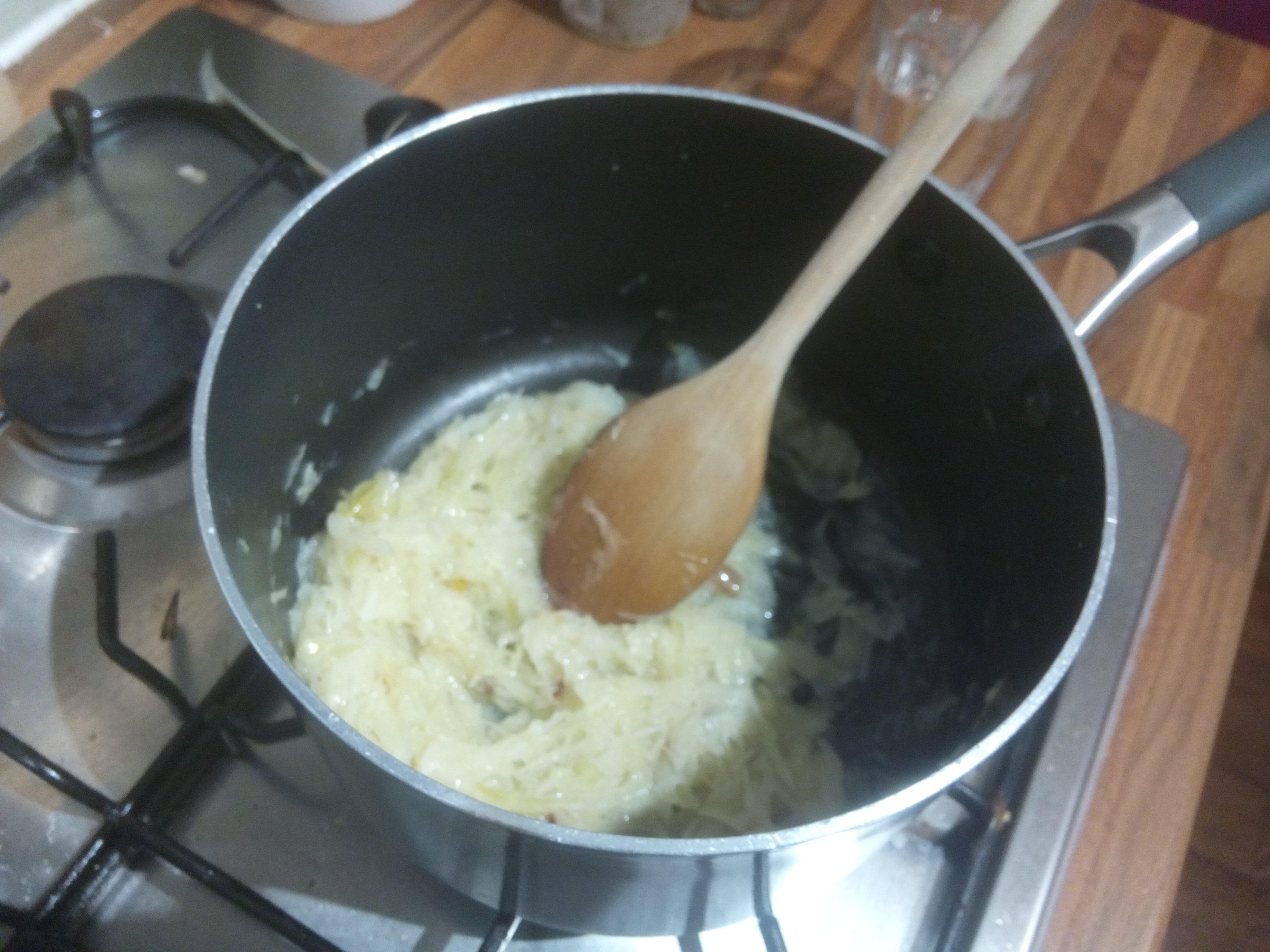 - Put in the sauerkraut from the packet or jar including any liquid.