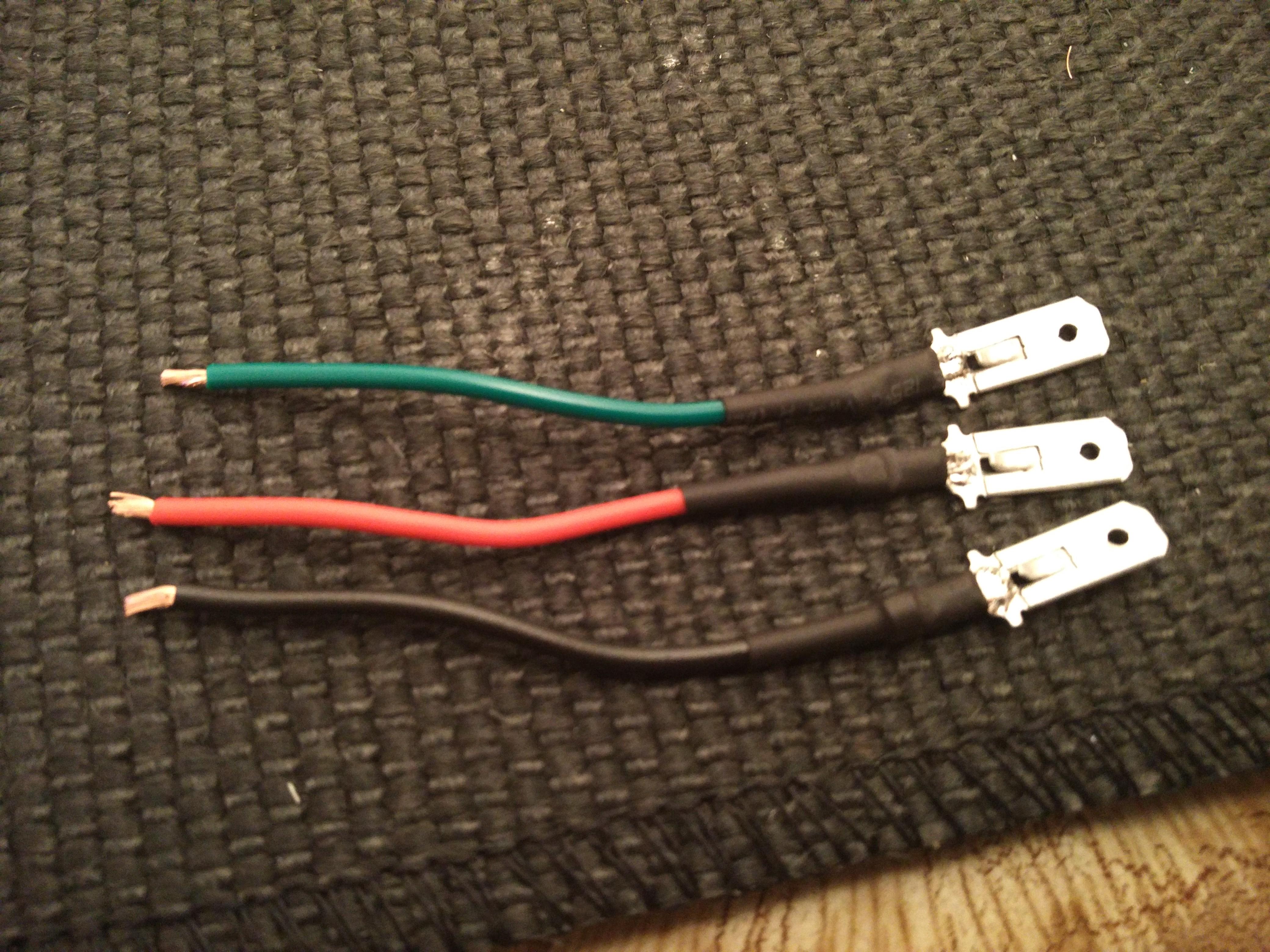 Again, having learned from building the LED dashboard indicator lights, I made sure that the spade terminals were appropriately colour coded with insulating tape.